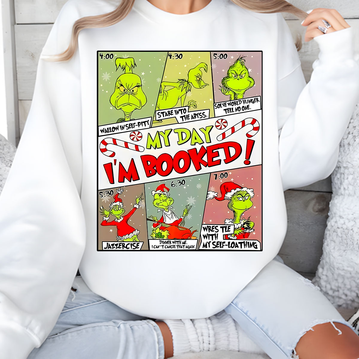 This “My Day I’m Booked” Christmas sweatshirt is inspired by the iconic Grinch, the Christmas-hating character who somehow makes everyone laugh and love him even more.