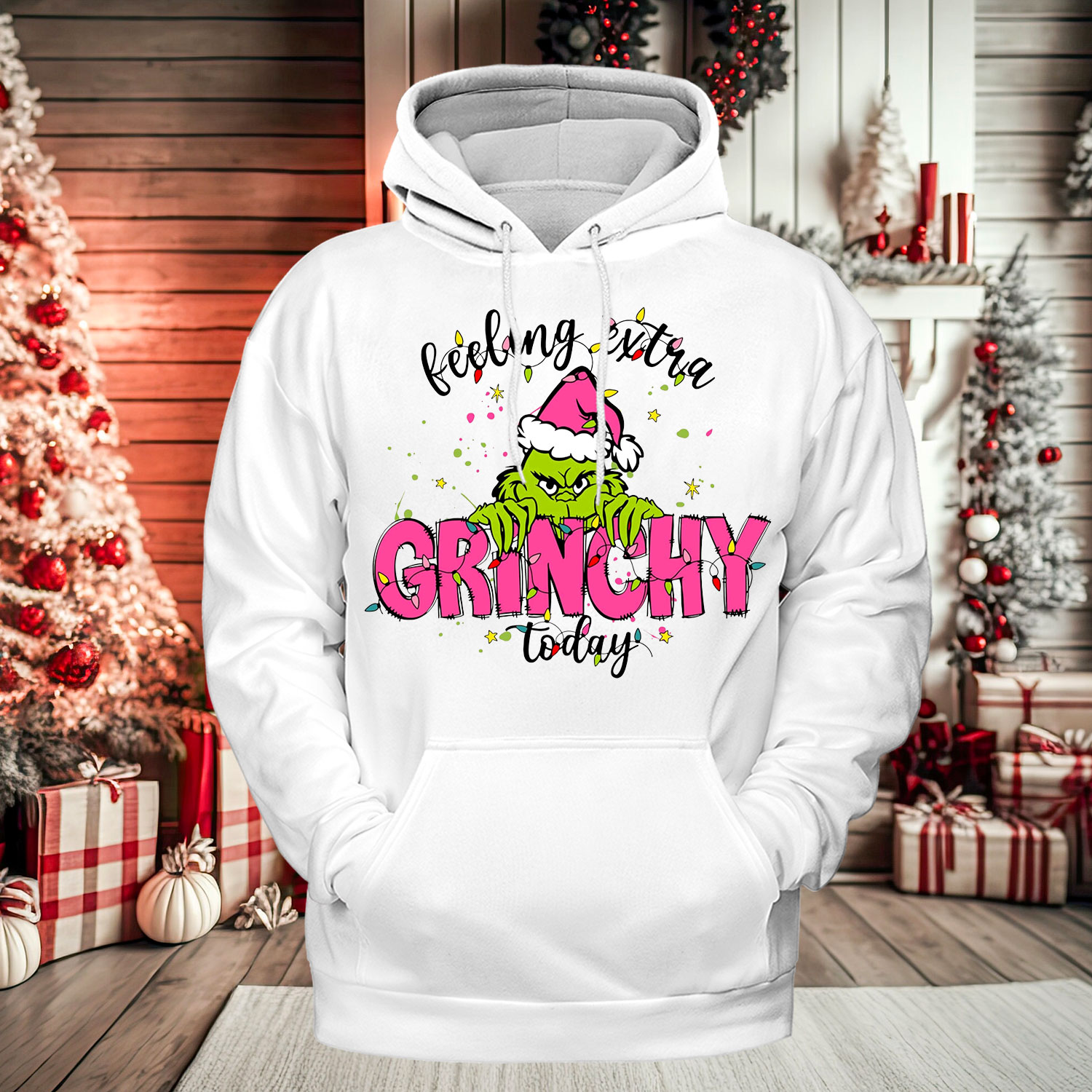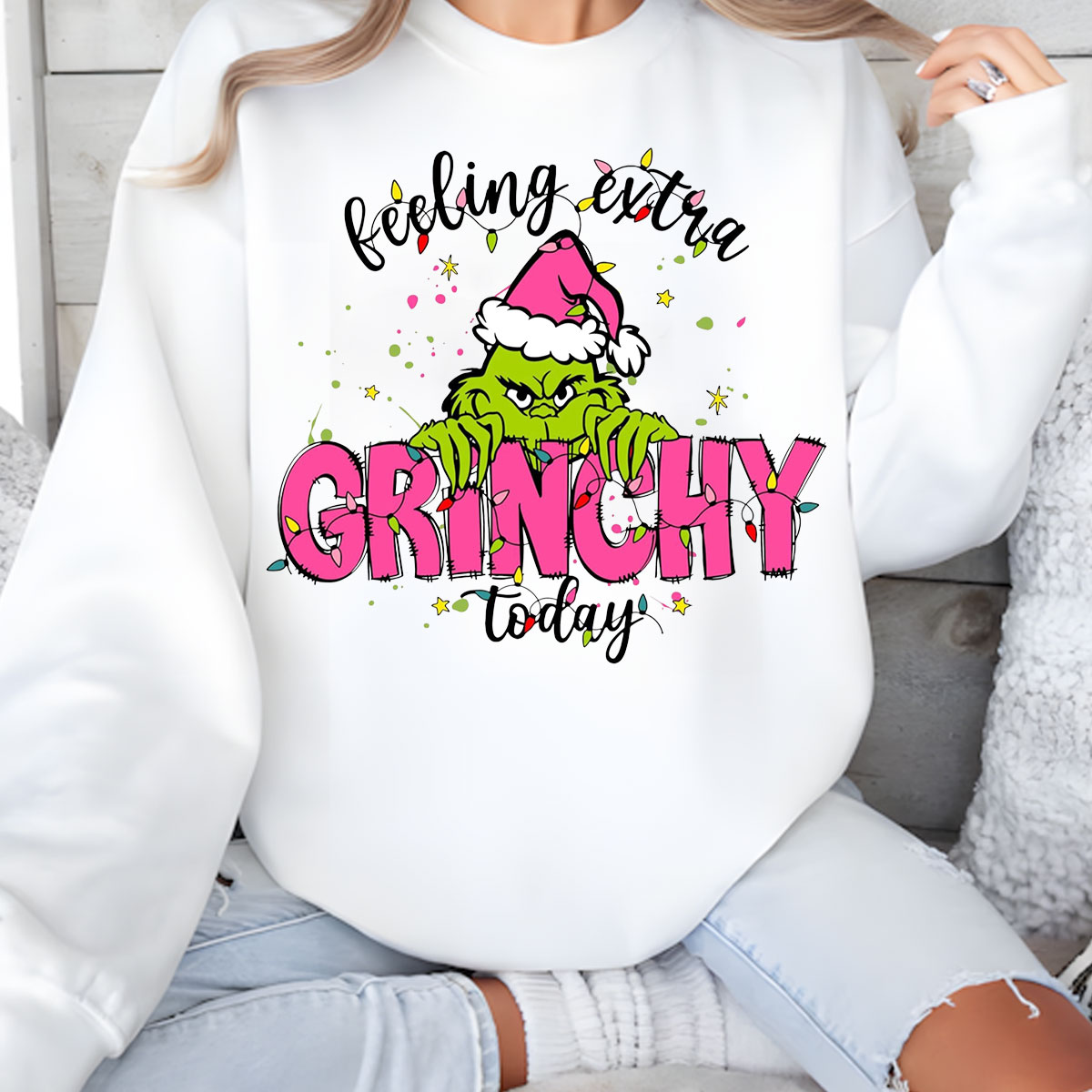 The “Feeling Extra Grinchy Today” sweatshirt adds a dash of humor and sass to your winter wardrobe — because even the Grinch deserves to look fabulous!