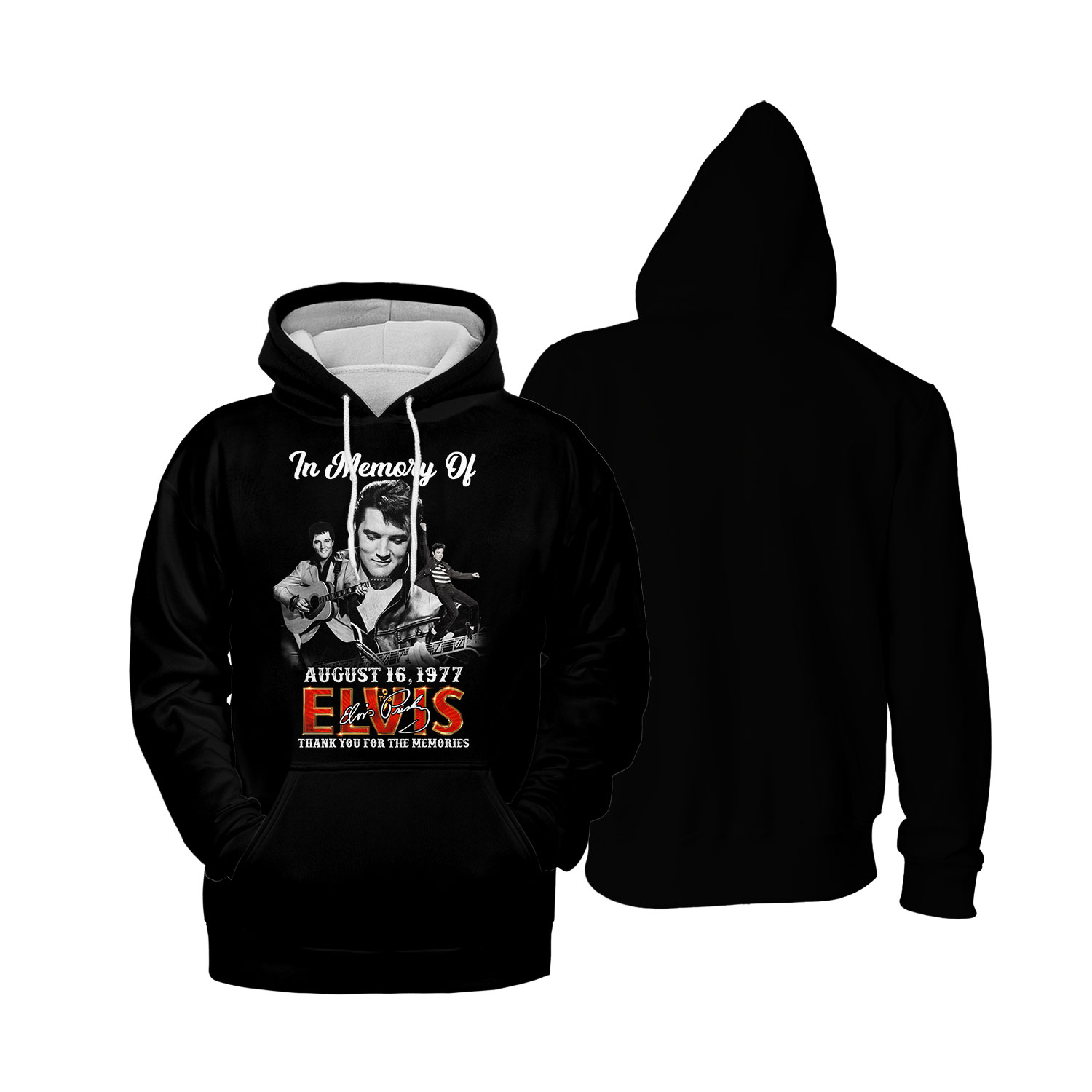 👉 Front: Iconic portraits of Elvis in his prime – guitar in hand, smile that stole the world.